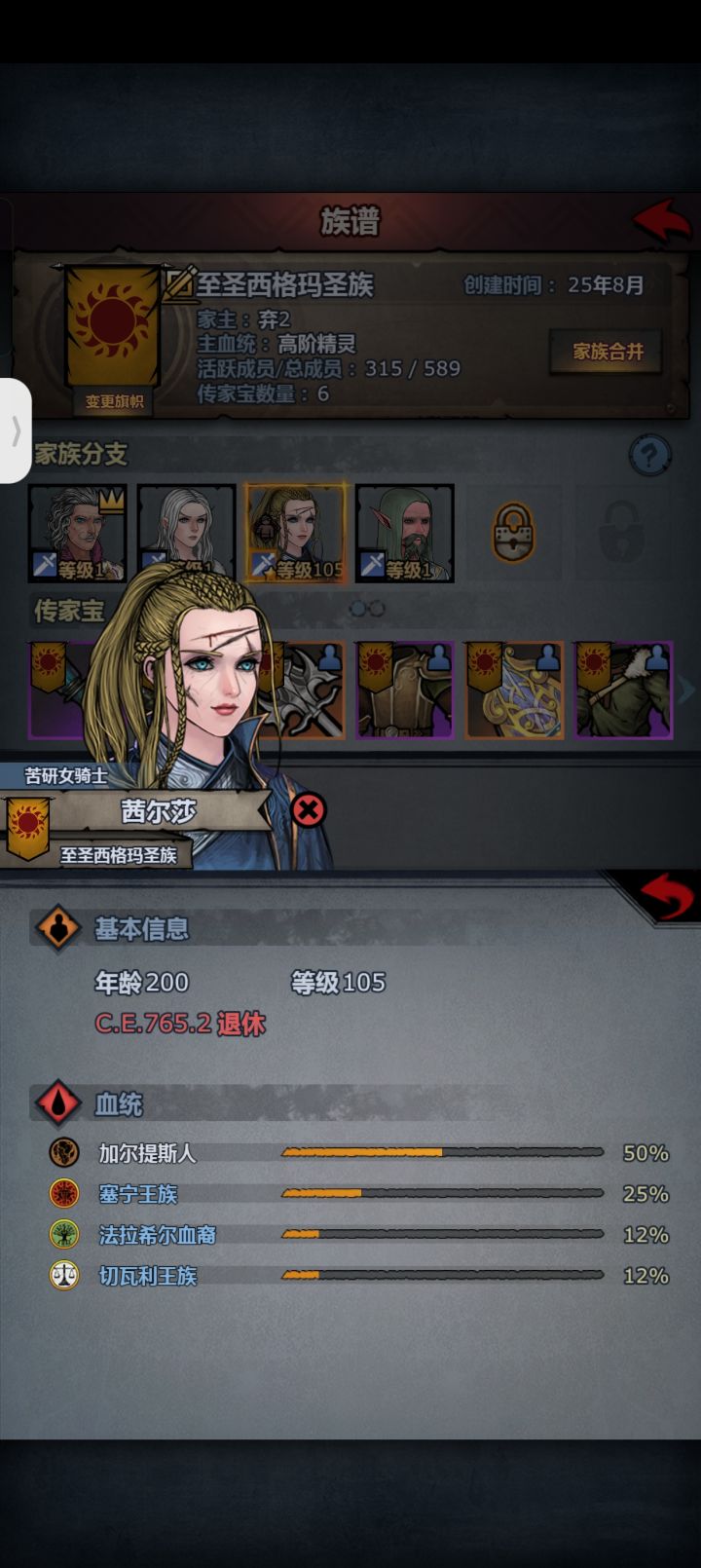 职业剑圣,陪伴了我100多年。在他的带领下,我的团也是发展到如今拥有了五个神器。她始终战斗在第一线,前期全部靠这个小公主带着我飞。活到200岁还没死,我团年度劳模担当就是她了。