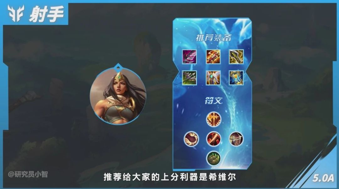 而射手中,希维尔得到调整,W(2)技能的伤害系数由百分比变为数值加百分比的构成,这让她在前后期都有均衡的伤害输出能力,排名稳居T1。