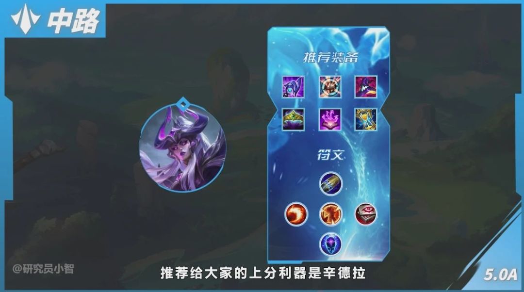 所以在中路上,推荐的上分英雄是辛德拉,备战选择如下,也可以自由调整。