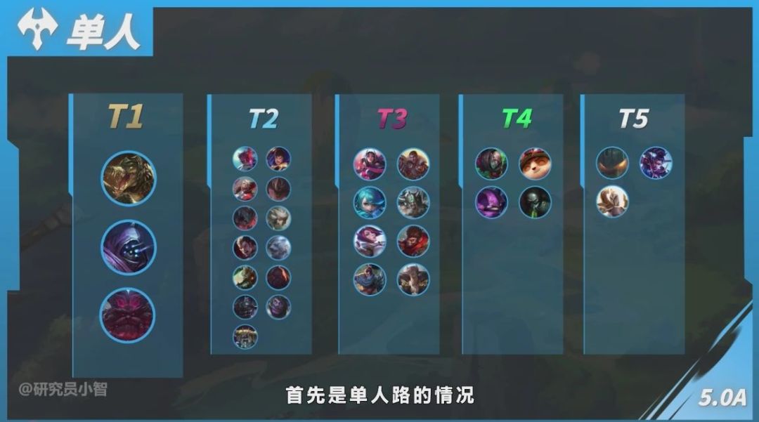 而荣获新皮肤的隆哥,已经迫不及待地想要在峡谷耍一耍了,并且随着版本的上线,迎来了许多改动,各个分路的英雄选择也迎来了多样性,隆哥今天带来了作者:研究员小智对于目前5.0a版本的状况分析,帮助大家更好的上分。