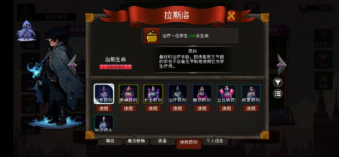 2、接着利用校外和校内的同步机制,在游戏中只要不进3选1的事件,光喂药剂拿明信片后强退,重开并选择继续游戏,就可以发现药剂没消耗,明信片到手了