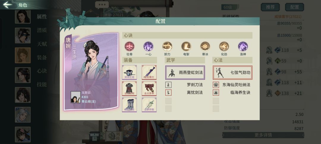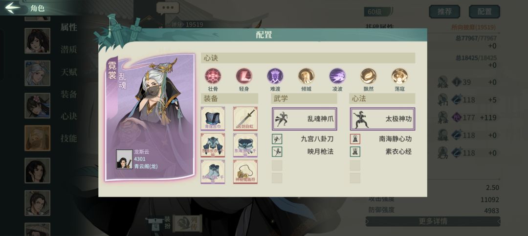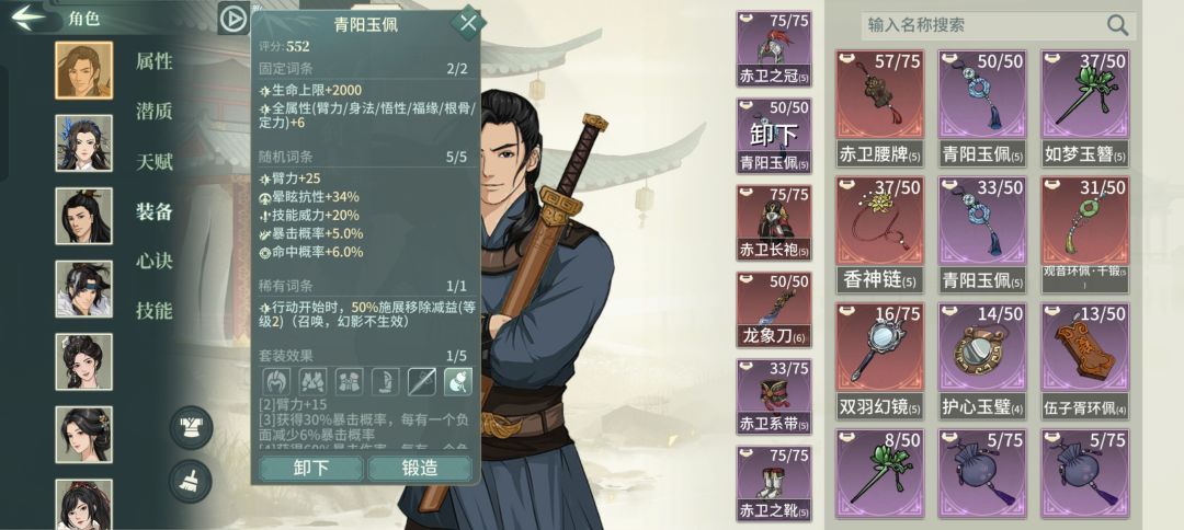再贴两张关键装备青阳佩和龙象刀的洗练图,龙象刀的洗练词条没有其他可变动的空间,青阳佩可以把命中词条换成减爆伤,命中偏进攻,减爆伤偏防御,二者皆可。