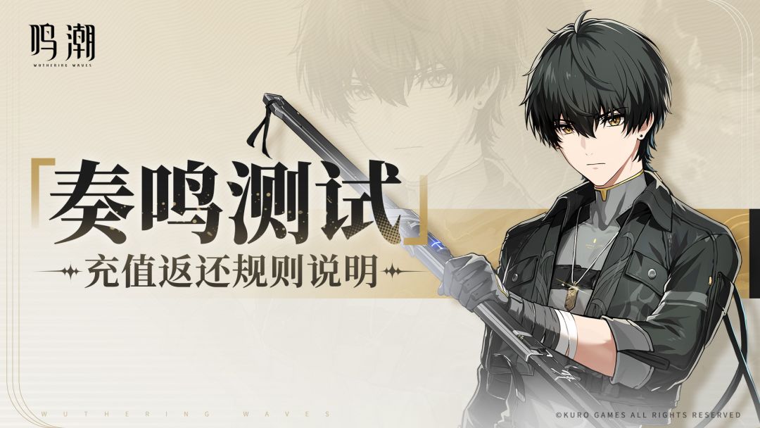 - 「奏鸣测试」的返还内容仅支持在《鸣潮》正式公测后,使用「奏鸣测试」期间进行充值的同一库洛通行证账号领取,无法跨账号领取,或将返还内容转移给其他账号。