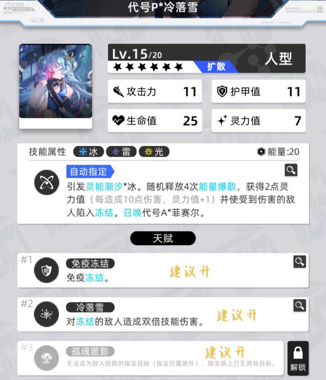 并使受到伤害的敌方陷入冻结(打在护盾上没伤害但会附加冻结!),引发冰属性潮汐,召唤代号A,能量需求20点相对较高