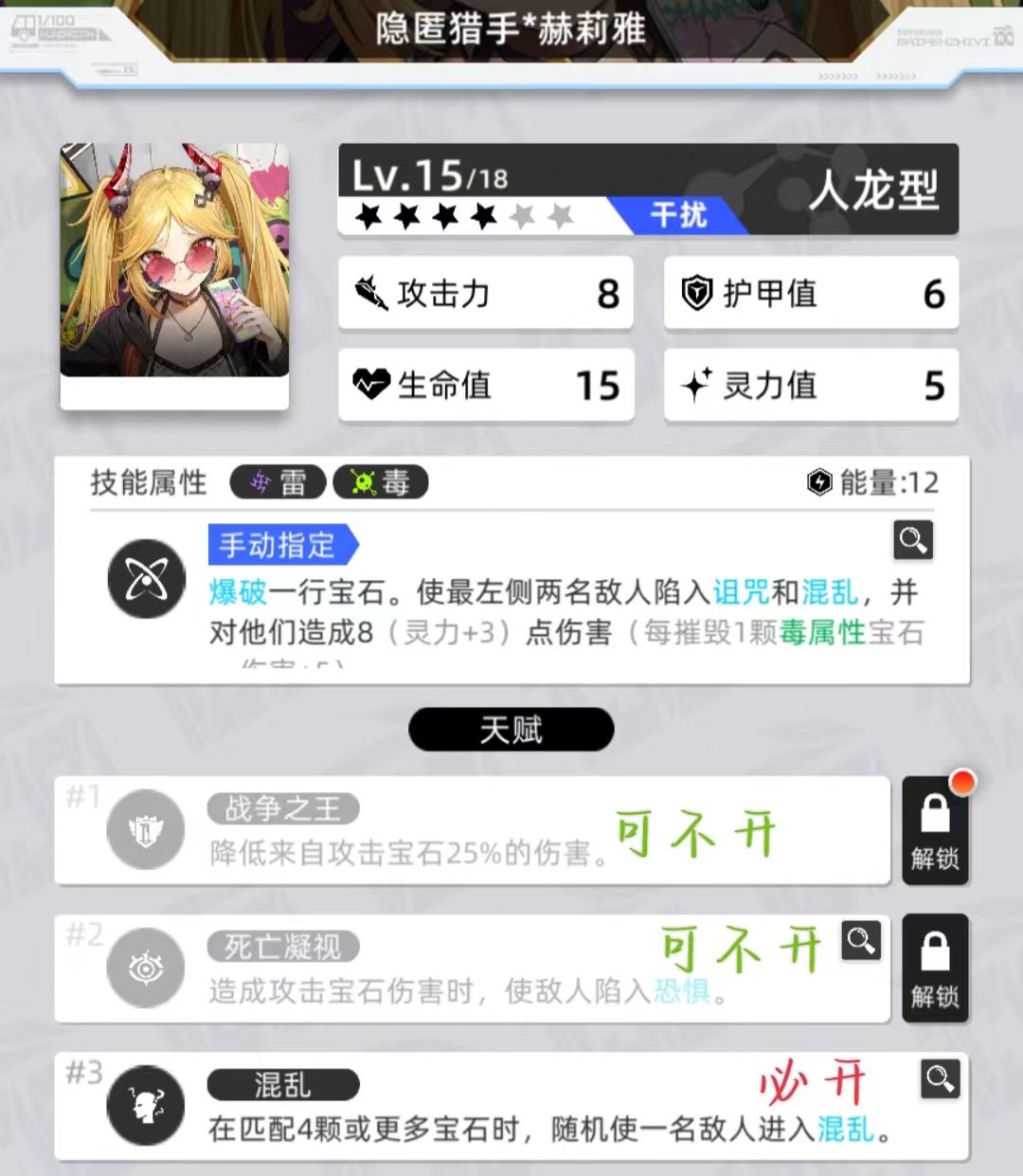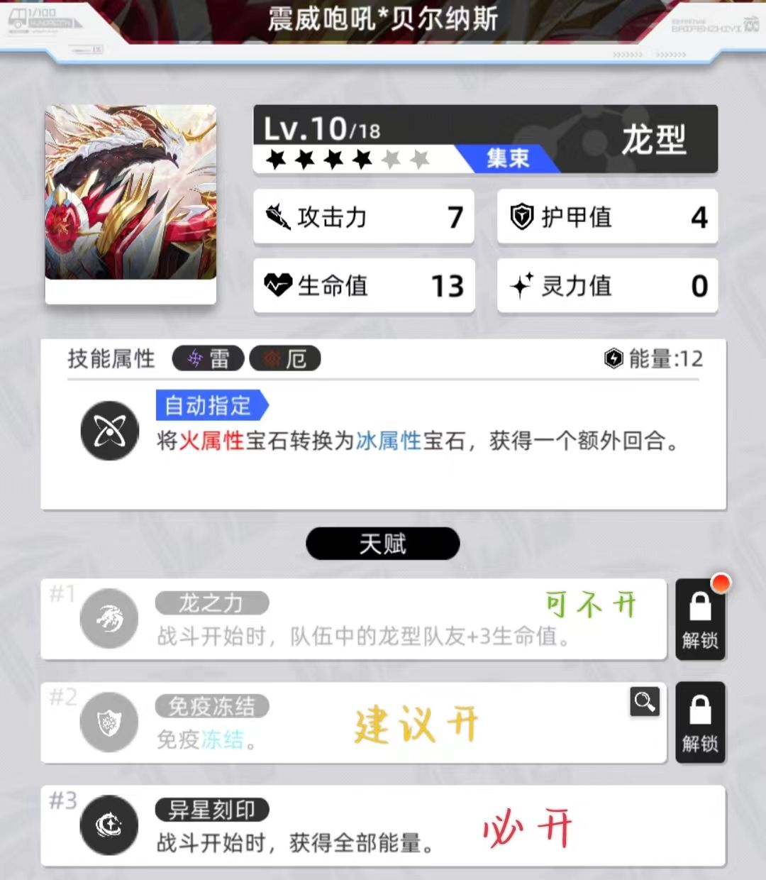 很棒的技能使我脑袋旋转,把对队伍无用的火属性宝石转成能给冷落雪充能的冰宝石,立大功!天赋【2】建议开启