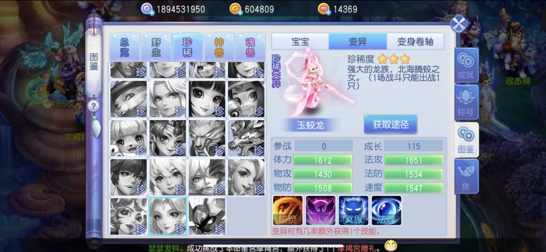 别的灵兽可能还要讲讲获得,但是玉蛟龙可以说是完全不用了!签到就能获得,人生第一个三星宠物!新区前期最佳挂机神宠!我们来看看资质。