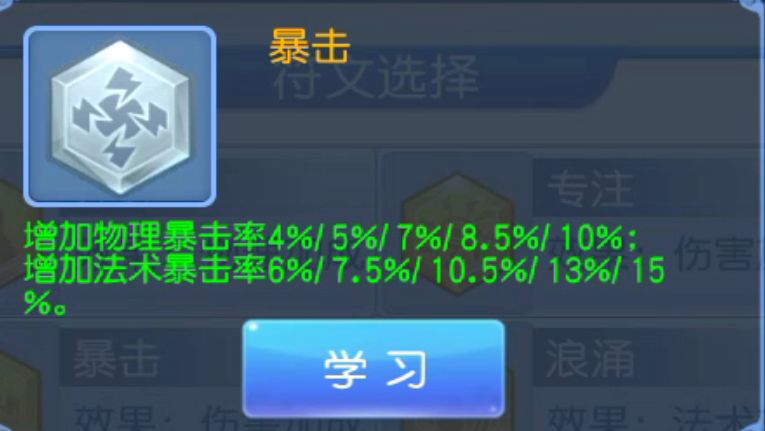 说到专注那肯定要提暴击,要知道他可是触发专注的关键所在,这个技能在桃花源记的选择比例上高达85%。