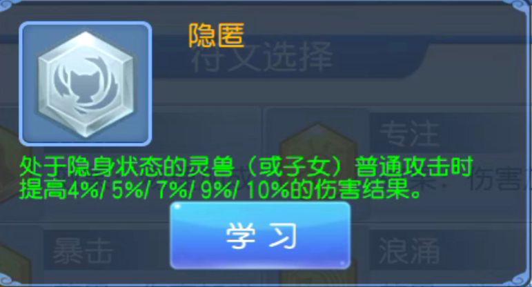 一级提高4%,五级提高10%,可以说,这个伤害结果的提高,已经是非常高,但是相比于那些连环或者说是暴击之类的稍微就差了那么一点意思,不过值得一提的就是他是百分之百触发这个状态,只要是在隐身的状态下就能够触发,感觉自己的脸比较黑的小伙伴可以选择试一下。