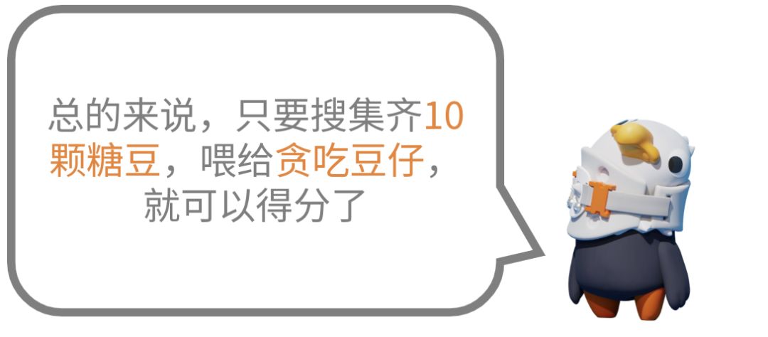 这是贪吃豆仔,搜集到的大糖豆要给它才可以得分