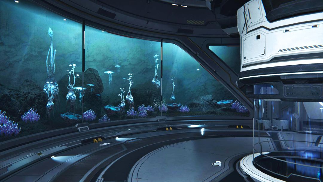 天马星号的员工主要聚集在综合生活舱,舱内遍布绿植让人眼前一亮,玻璃幕墙后是一片微缩景观,水母在各类变异植物间漂浮,让人心情瞬间放松~在这里漫步,阿姨最直观的感受就是“高级”!未来科技在这里具象化,全息的超新星投影与巨大的屏幕穹顶都见证着辉煌与华丽。