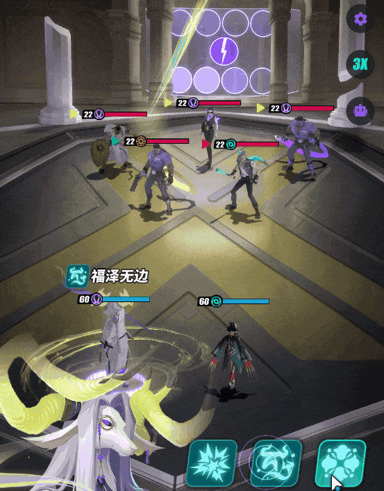 三技能:百无禁忌攻击敌方全体3次,每次伤害为自身攻击力30/33/36/40%,为目标附加2回合[睡眠]和[防御下降],为全体友方附加2回合[暴击伤害提升]。祓灾:攻击目标为[睡眠]时,额外造成余然最大生命值5%的伤害,此伤害不会失手、暴击或会心。
