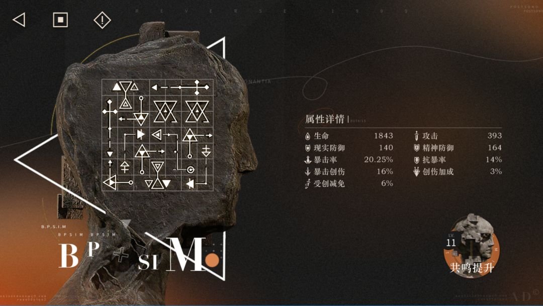 共鸣选择:由于帕米埃2个被动都是攻击加成的,这里放弃暴击直接堆攻击,共鸣用的这套393攻,点到11共鸣多个攻击小三角凑拼图,10共鸣最后多出3个格子