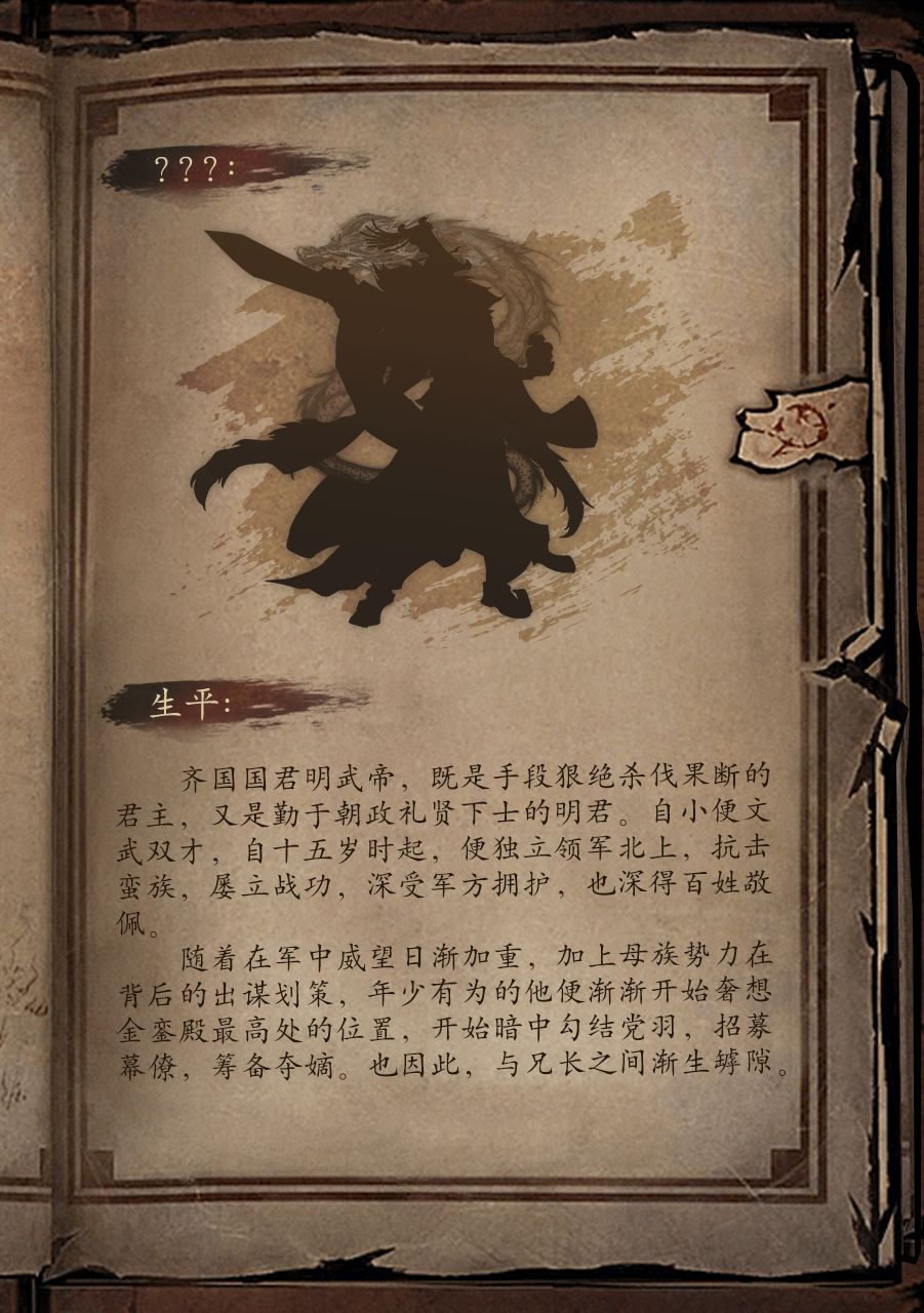 亲爱的涤罪师大人!今日还请劳烦继续补全见闻录残缺处,此人无人不知无人不晓,乃当今齐国国君;手段狠辣但又礼贤下士,是一位雄才与野心并存的君主!