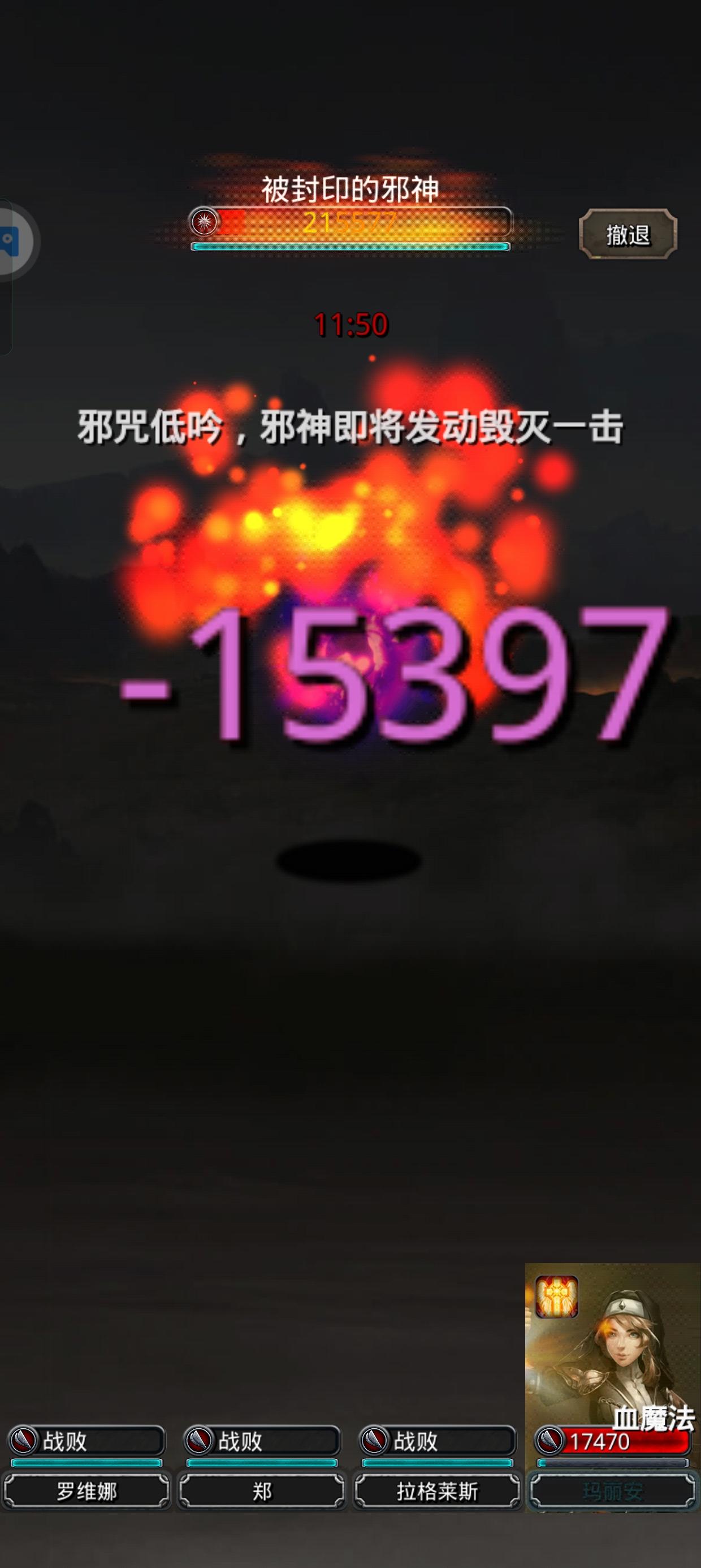 倒数第2次用上面的阵容打的时候大概是一个小怪打一分多几秒,小怪打完好像4分多钟,忘记给圣殿压血了,所以法师第二个挂了,圣殿和祭祀伤害倒是不低,就是疯狂miss,这当然也很正常。