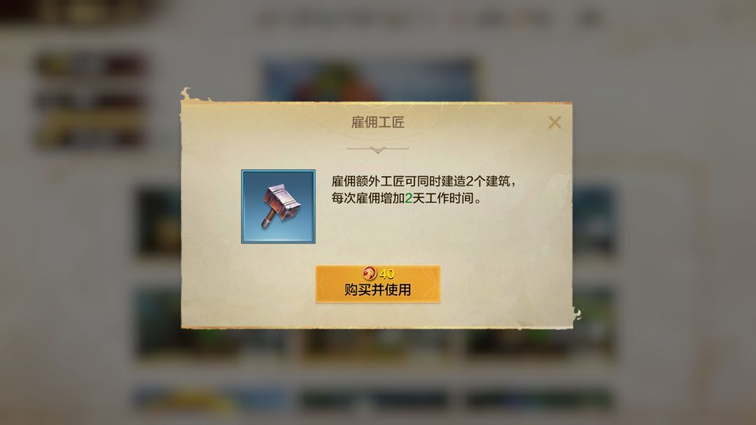 ①雇佣工匠:花费龙币或联盟商店购买,可以开启第二建筑队列,建筑效率直接翻倍,超值划算一定要买!
