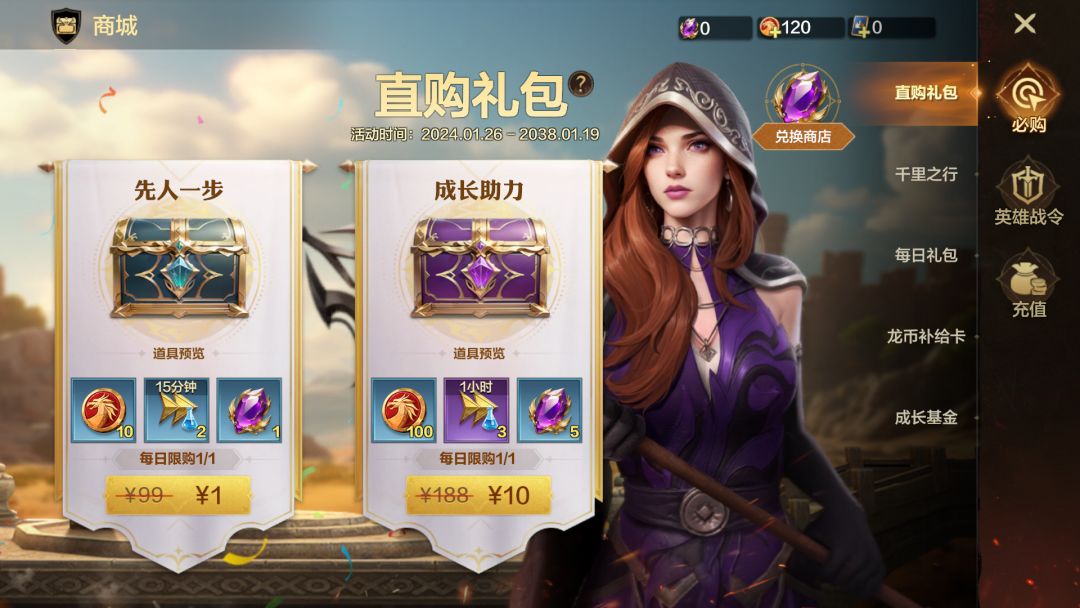 强烈建议开局购买,获得传说英雄江乘风,配合千里之行中的盖尔斯兰和塔米克,是开荒期极好的前排队伍,同时还会获得大量养成道具,对于前期发展帮助很大。