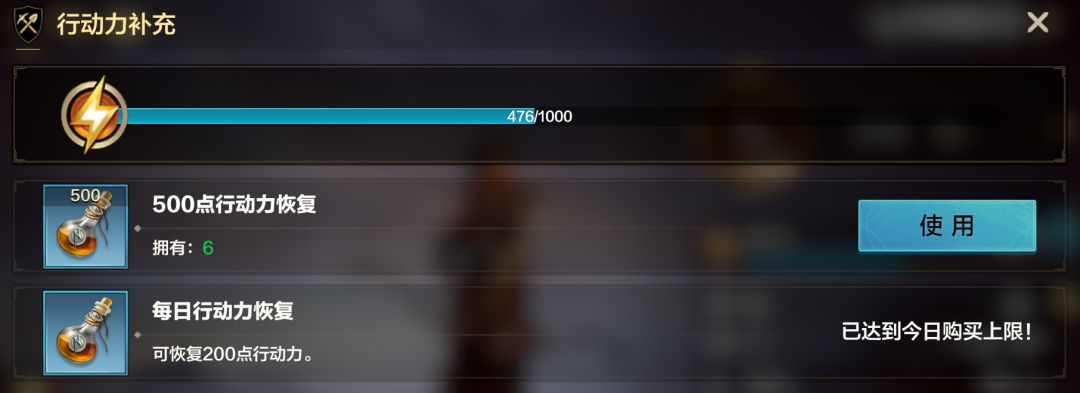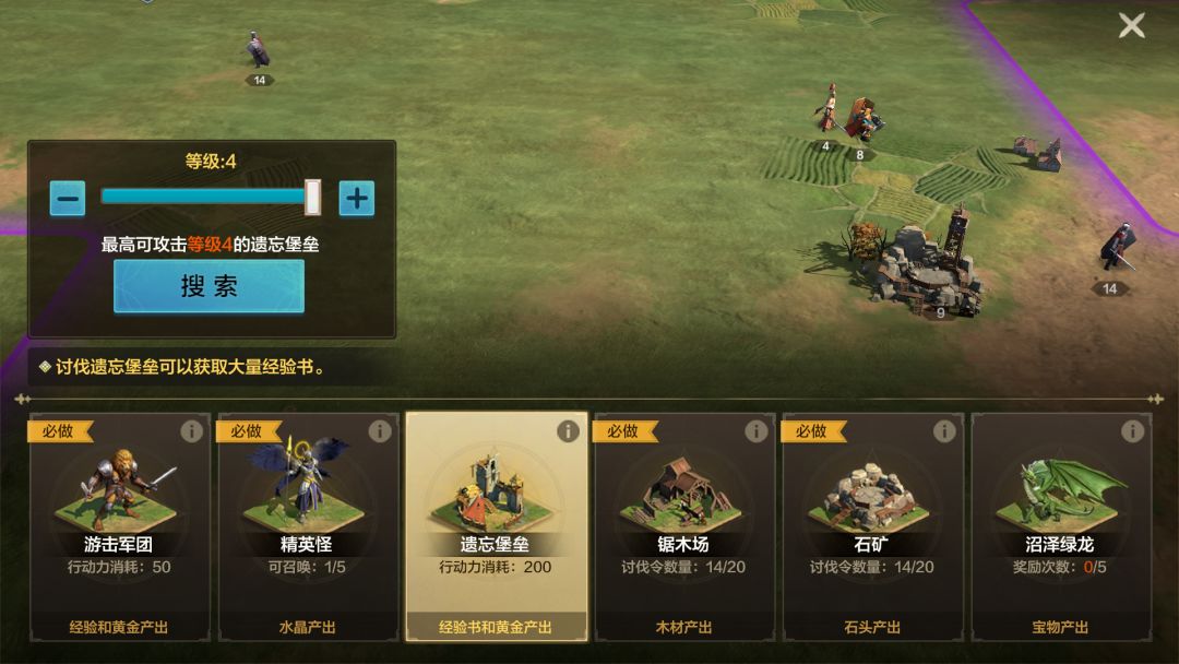 行动力:用于讨伐游击军团和遗忘堡垒,产出经验和黄金