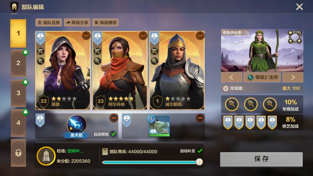 ②兵种专精:优先保证兵种专精一致,以获得全属性专精加成。