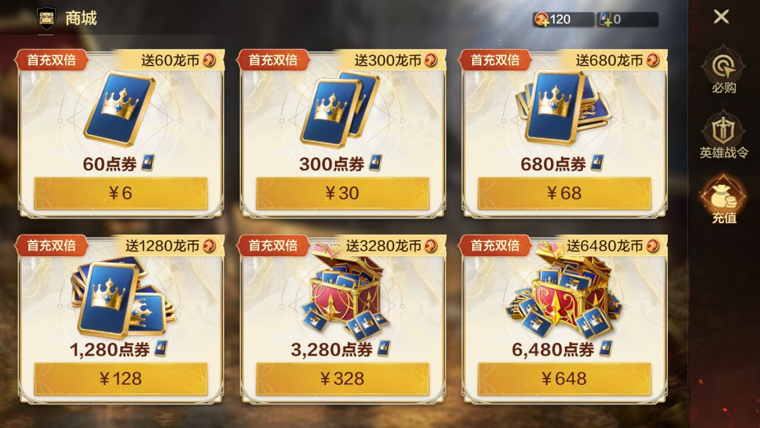 各档位首充可以获得双倍龙币,相当于200%返利,因此可以每个档位充一次,最为划算。
