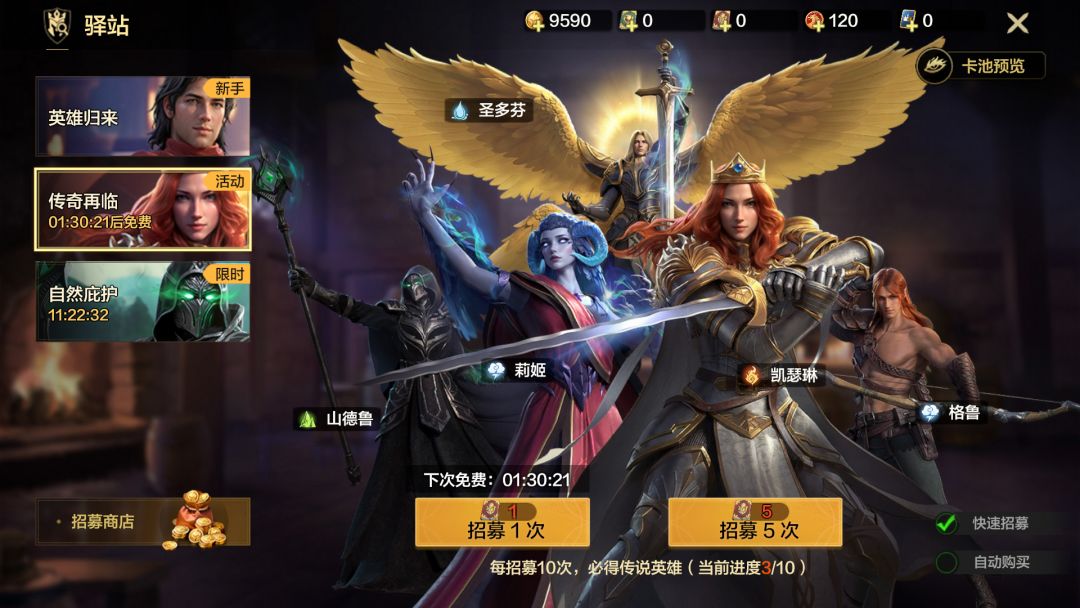 ①免费招募:每隔24小时可以免费传奇再临招募一次,早用早刷新。