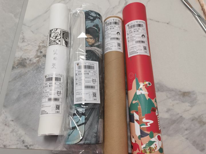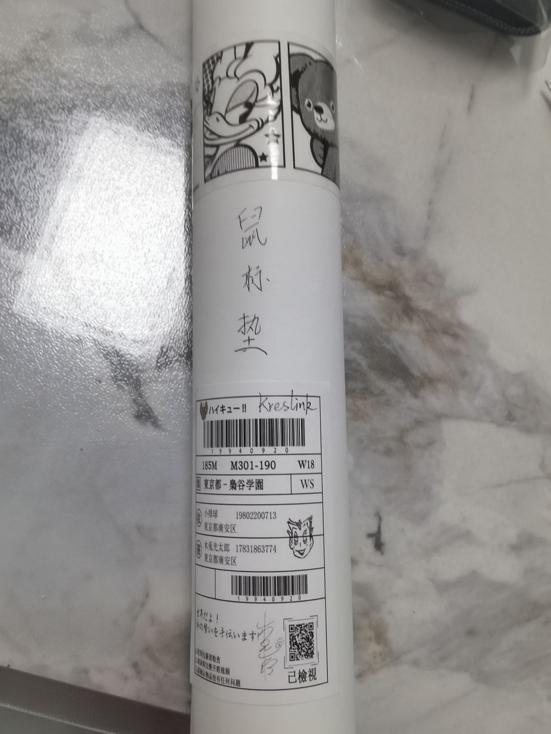 。上面贴了可爱的贴纸,写了各位的名字,不会弄混的,注意贴纸的右下角的提示哦,海报明信片在路上容易损伤,到货后一定要好好检查。