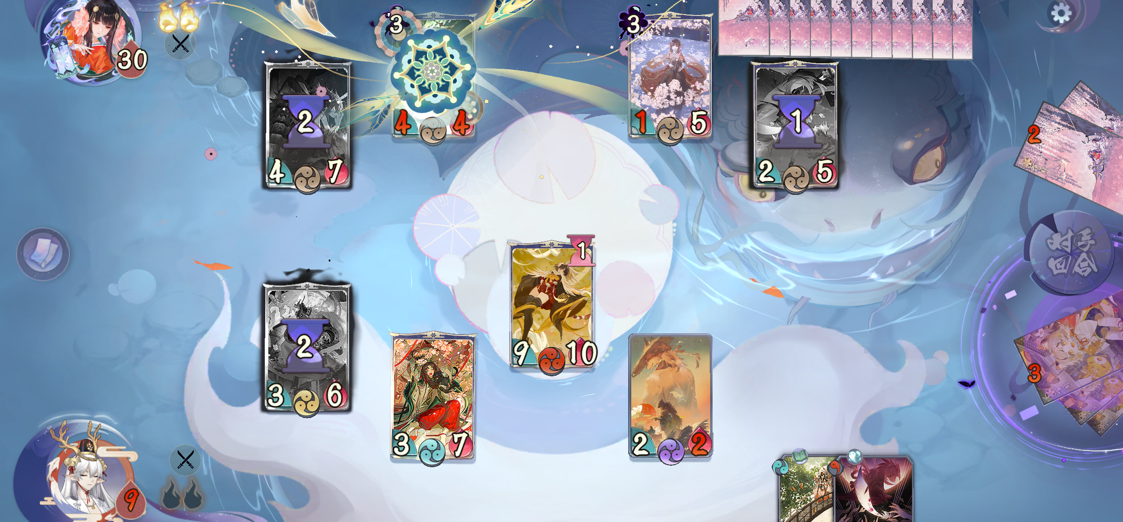 可惜真天的三勾形态牌,前面被上了debuff没法用出来,不然能提前斩杀