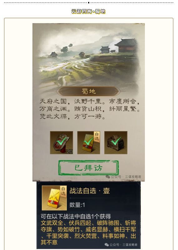 《三国谋定天下》云游四海奖励自选奖励怎么选?大有讲究!