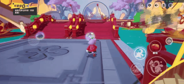 之后就来到了红木拱桥区域,虽然两旁景色绝伦,但可不能停下来欣赏荷叶莲花哦。拱桥前方的道路是两条传送带,脚下的传送带会变换方向。身手好的星宝,可以横跳到顺向的传送带上,甩开对手!而求稳的星宝,可以打开“加速”技能并跳跃着前进,也能顺利穿过~