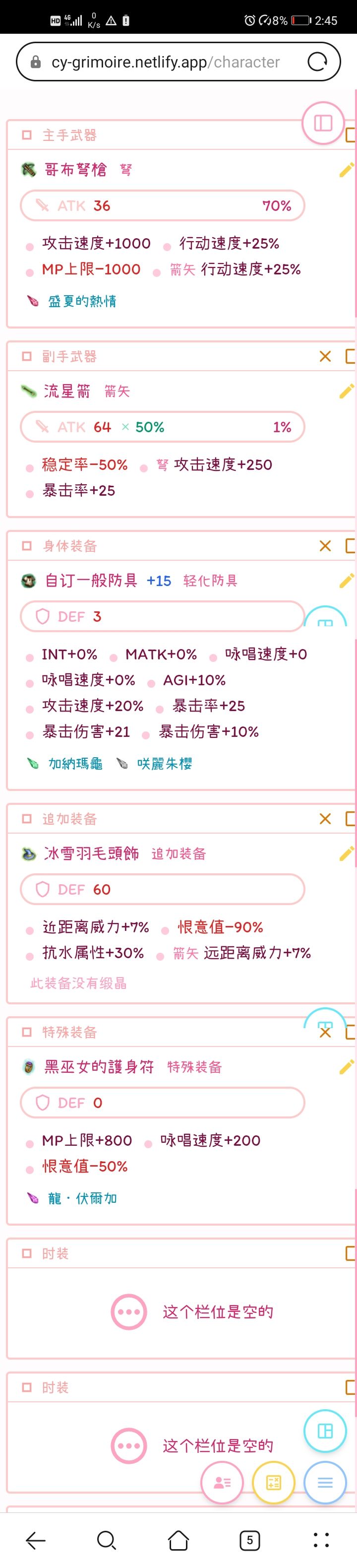 副手装备随意弓箭,衣服、戒指、帽子可以装备一些增加魔法值上限的来弥补-1000魔法值的问题,另外可以适当堆双抗/血量/百减仇/复活时间缩减等等来提高容错,也建议堆一部分暴击/命中来提高普攻命中率,能凑到百爆肯定是最好的。