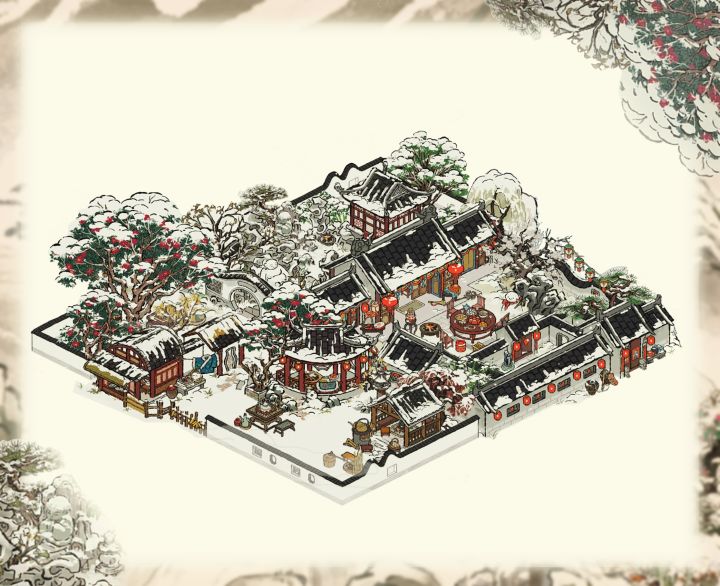主建筑:茶开一扇,瑞雪当窗,山茶小煮,炊烟升雪亭,山中归雪屋,寒酥园。