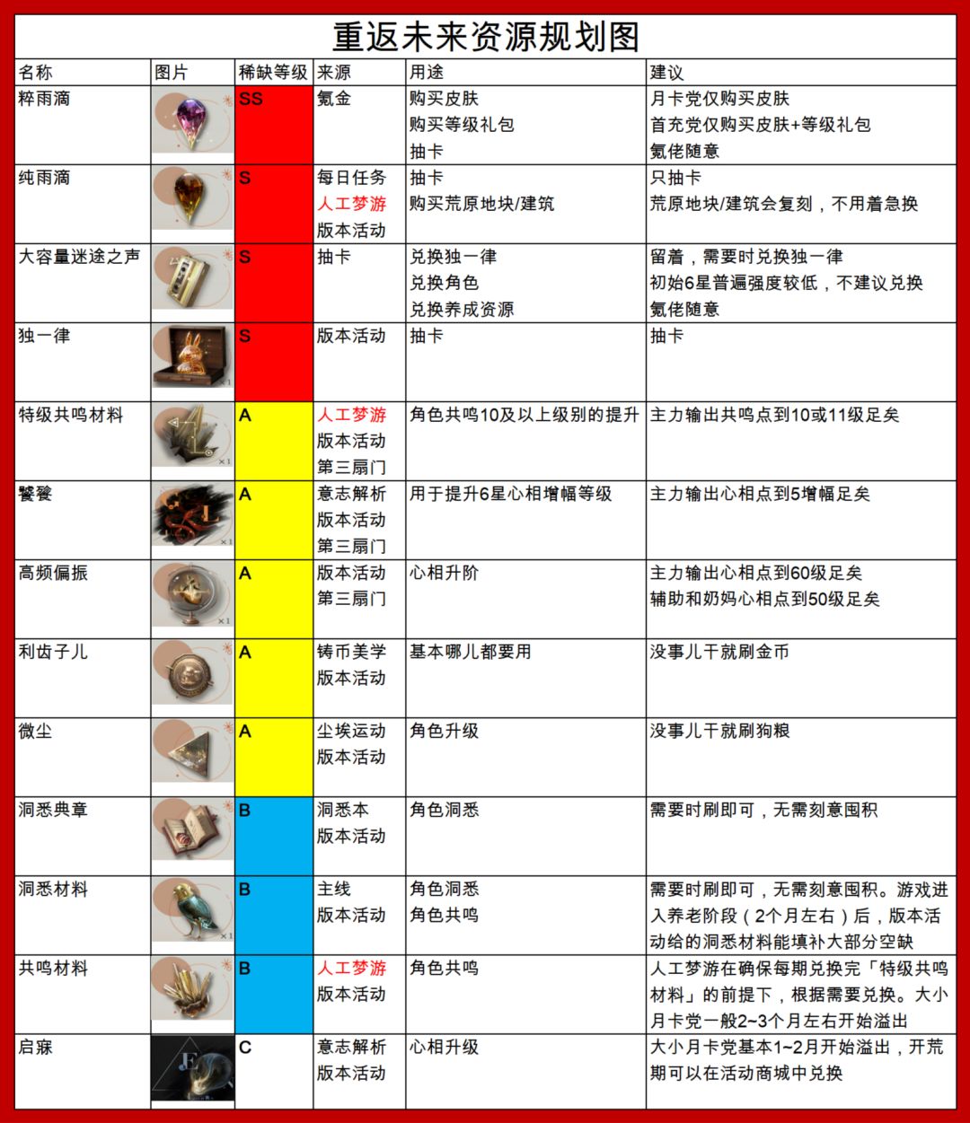 本贴旨在帮助萌新理解【重返未来】中各项资源的稀缺程度(省流版见PART2.5)