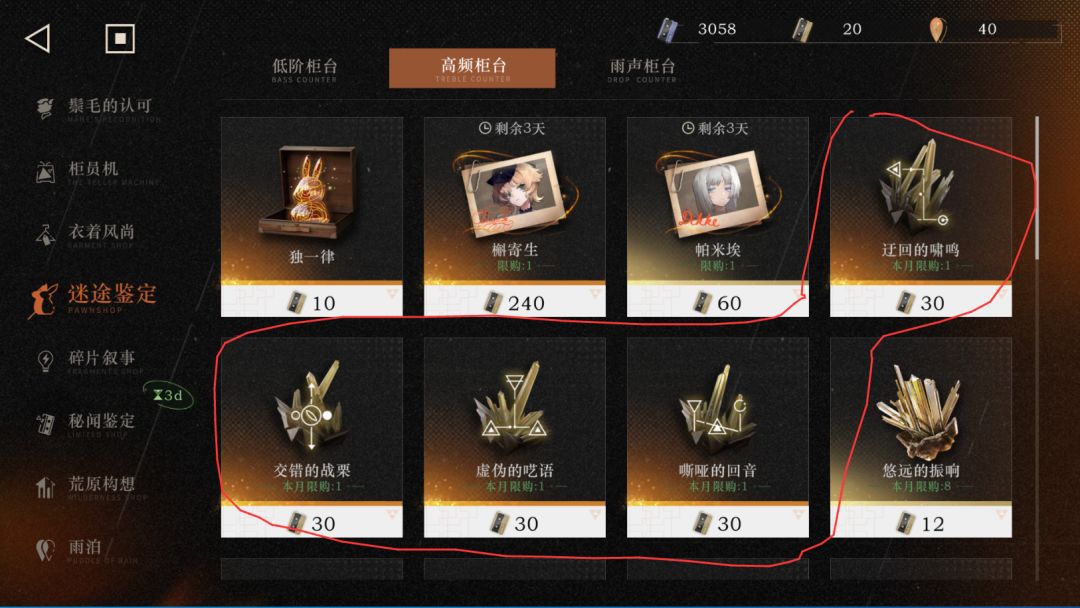 - 来源:低阶柜台(用迷途之声兑换),版本活动,第三扇门