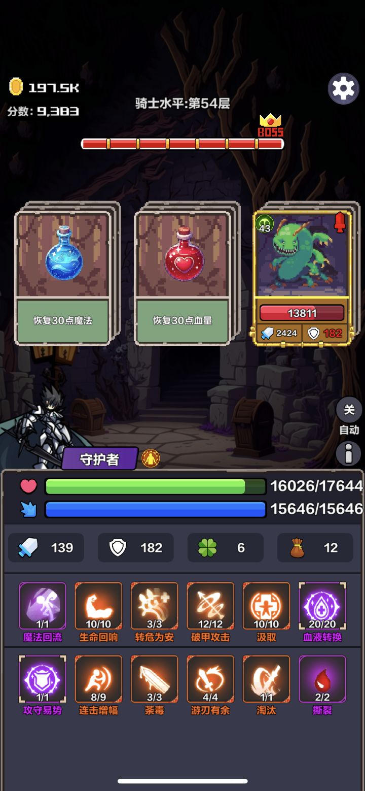 基础回血不说,被动前期必用。接下来就是重点,中期破甲攻击+攻守易势,平a几次以后降低一定敌人的护甲,然后攻守易势调换敌人攻击和防御,打你就不掉血了,不怕boss禁疗。后期血液转换+淘汰,一直升级到血液转换19级就能直接秒任何boss。然后就无敌咯。
