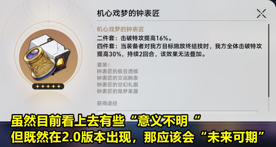 2.0版本新增了两套外圈遗器,一套是负面状态下增伤的死水深潜的先驱(简称死水套),另一套则是机心戏梦的钟表匠(简称钟表匠套)。目前来看,钟表匠套更倾向于未来可期,所以今天重点是来聊聊死水套适合哪些角色,以及是否值得刷。