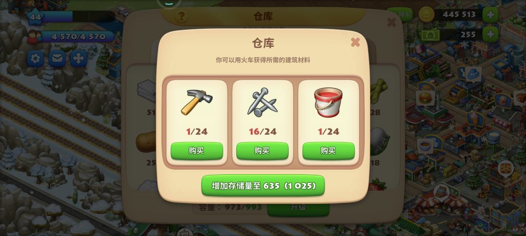 1.微氪玩家(0氪玩家参考上面那个《压级专辑》)对压级的依赖性可降低很多,方向就是扩地最大化(主力账号的目的是装扮,是更高效的节奏,没有特殊爱好不推荐盯着经验值硬压级),扩地到人口需求405以上时需要扩地工具,扩地工具由火车运送,因此需控制火车需求范围、多送火车;
