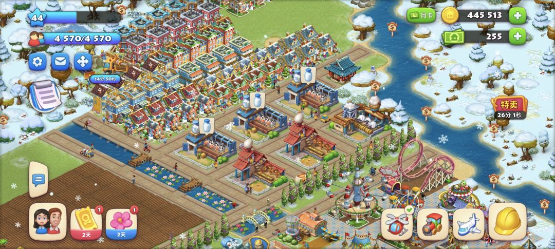 4.25级后采取“半压级”模式,“半压级”即工厂、农场建极少量基础的,同时不发直升机,只发火车和大飞机,社区建筑、房屋、土地跟等级能开尽开,保持激情节奏的同时将等级适当压住;