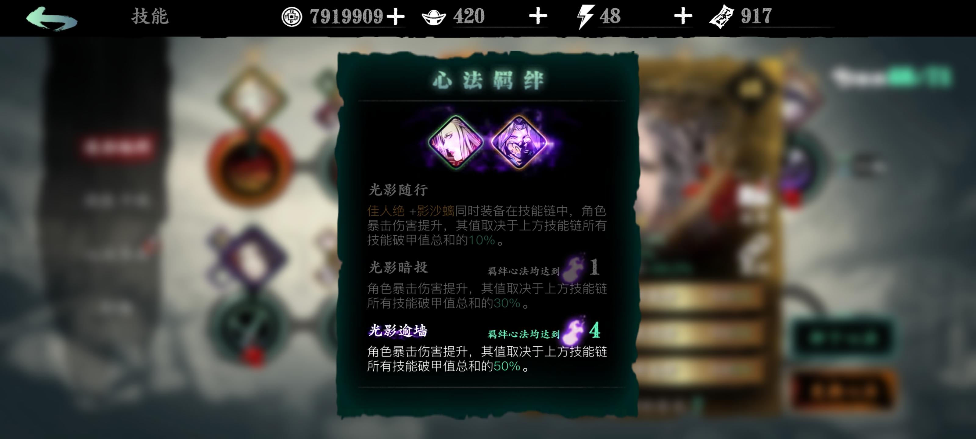 如图,龙二心法羁绊计算应该为(上链全技能破甲相加×0.5)