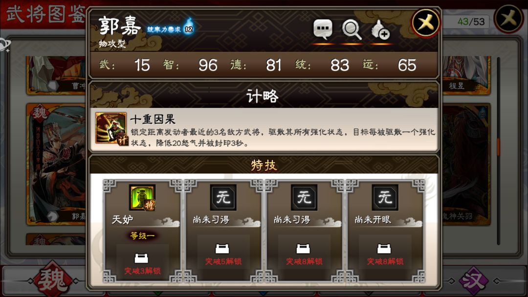 喜欢郭嘉的主公可以关注神将入世以及其他运营活动及时把他招入麾下吧!~