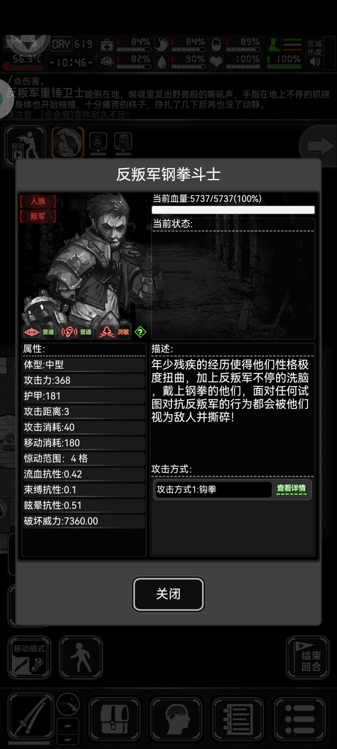 打7任,RPG更不用说了,锤子怪击倒概率高,拳击手击退概率高(立盾都能被击退),坦克兵护甲高(没啥软用),那个决杀者,我觉得是最强的,虽然武士刀盾反3刀就死了。(流血6回合一回合12血)还可以暴击,立盾暴击直接打我快100血了。还好打bpp药,不然就寄了。建议盾反引怪流,他们的攻击范围最多4格,拿小石子,扔过去,一只一只打。