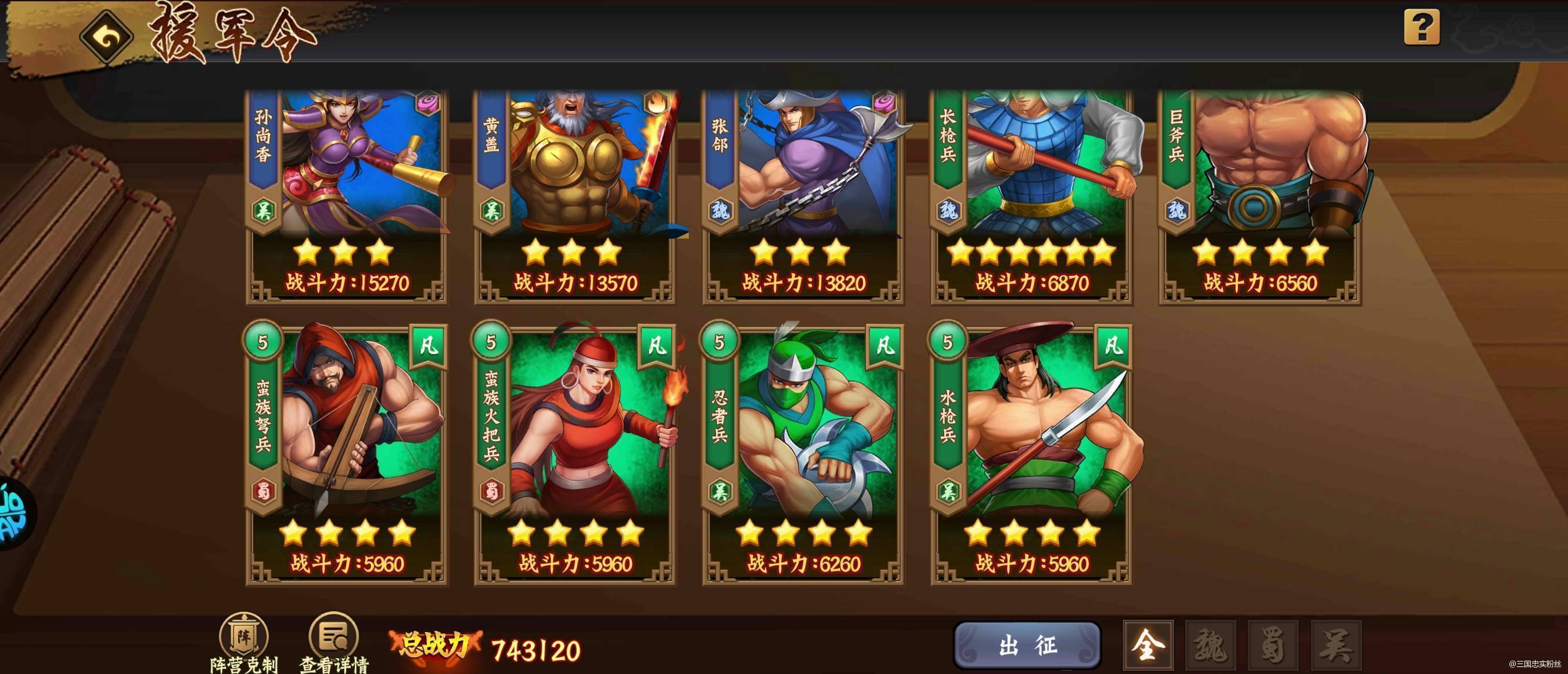 就是援军令除6个橙色以外的援军,剩下是18个,如果有1级的,全部升级到5级,经过我的测试,前面5级耗费的经验很低。
