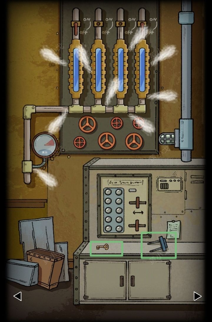 1.(蒸汽开关)点击获取桌面上的【钥匙C】和【闸刀开关】