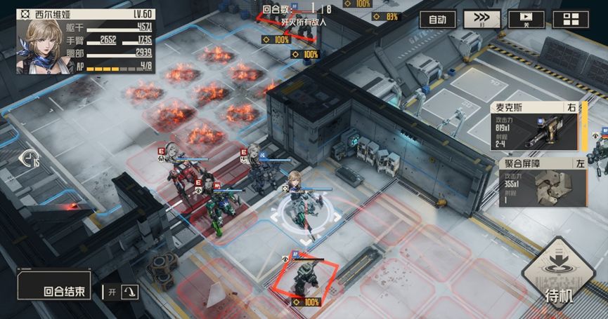 本关敌人虽然数量较多,但是远处的敌人并不会主动攻击我们,我们可以逐个击破,先集中消灭一处地敌人,再转而一同攻击另一处敌人。而要应对ap消耗增加的情况,则需要尽量节约ap使用,ap不足以使用技能时可以考虑保留ap,下回合再使用。