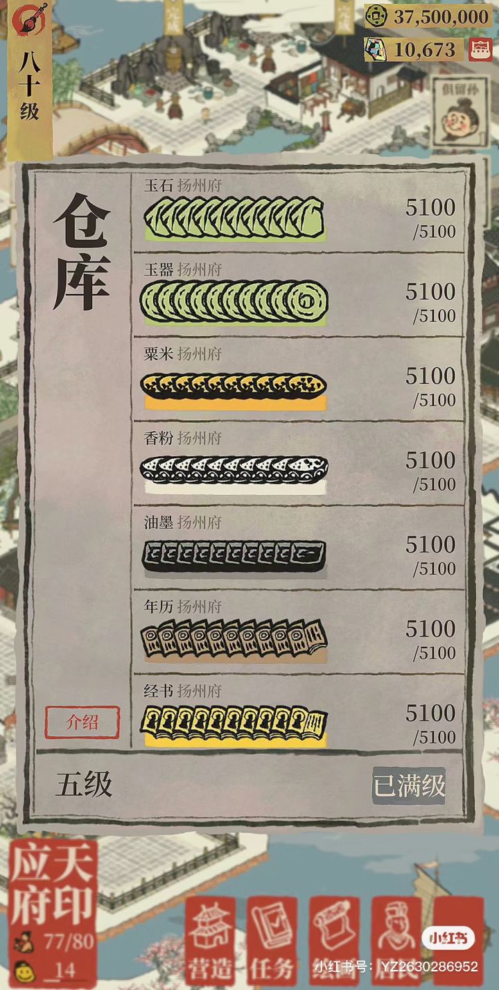 2.仓库分为三个类型:仓库、砖砌仓库、大仓库,不使用补天石建造升级仓库容量大概共有7600,完全够用。