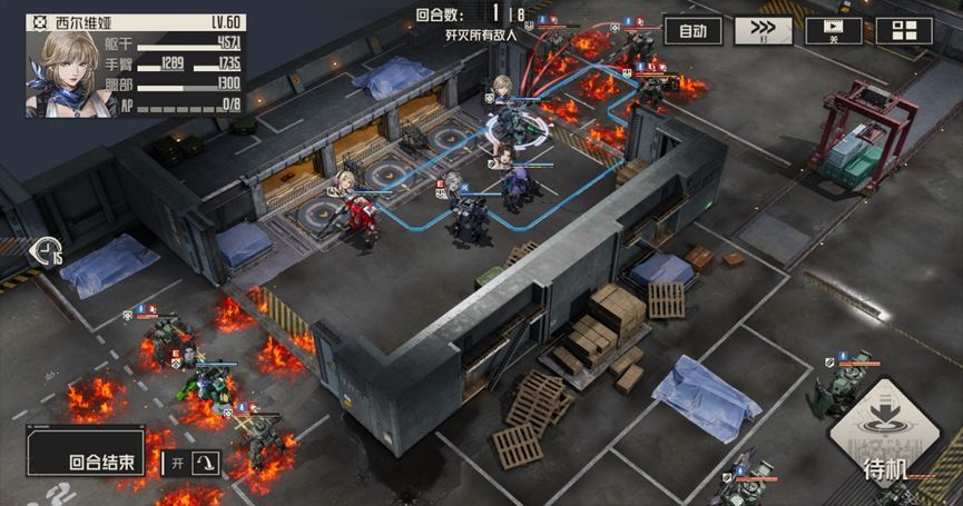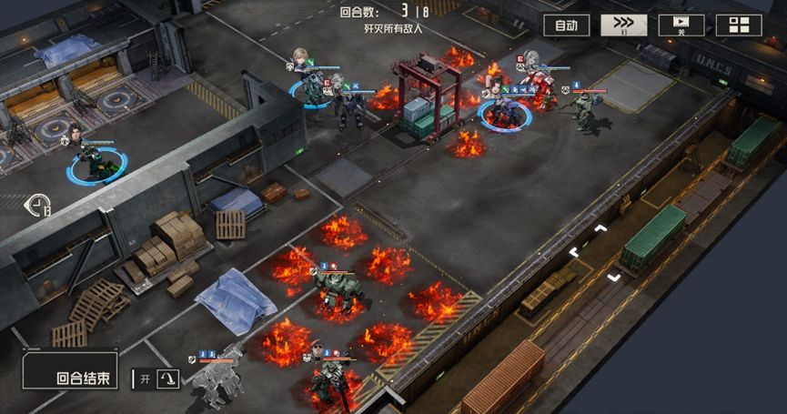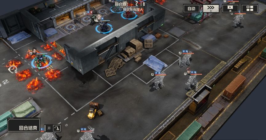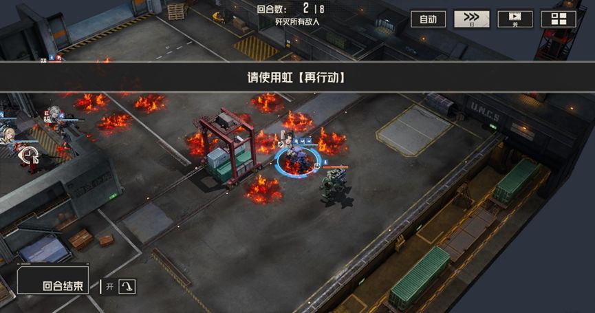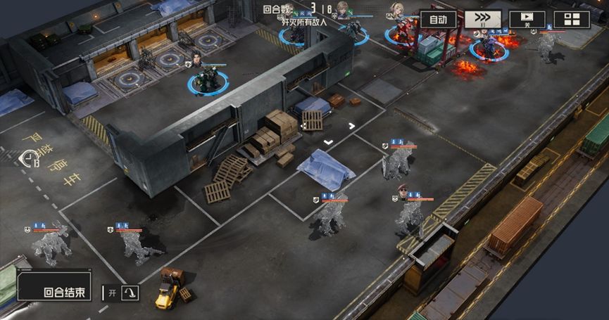 艾琳分别攻击左右两边敌人,马库斯攻击左边战术兵