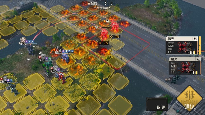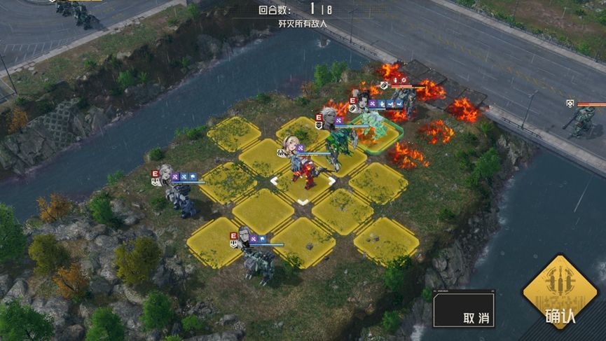 虹将两个血量较低敌人消灭,如果可以的话,中间格斗兵也消灭