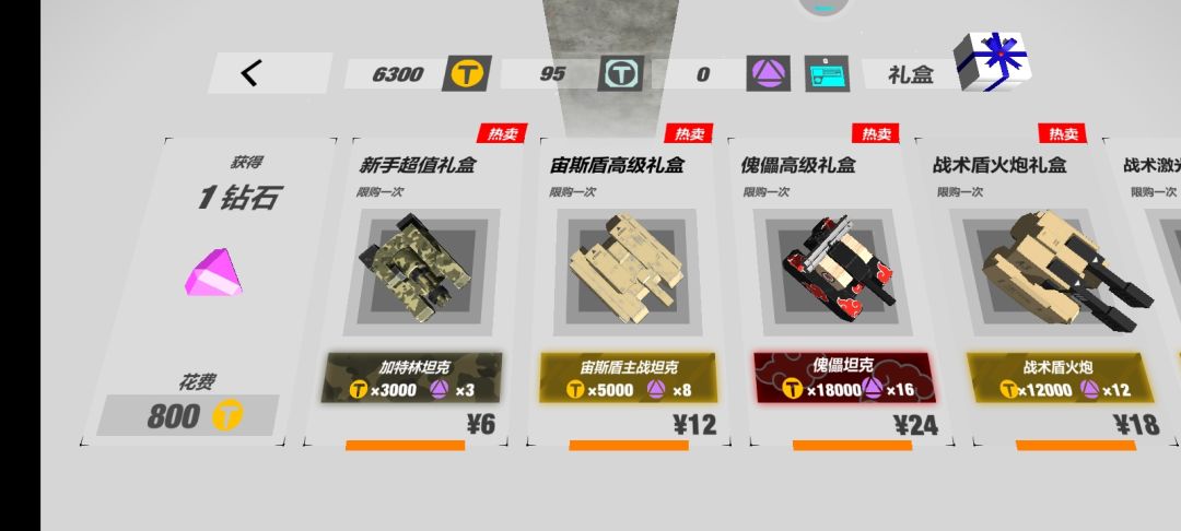 钻石是给坦克提升属性必备的道具(这个界面往右还有内容)
