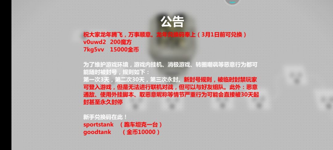回到关卡界面有公告兑换码
