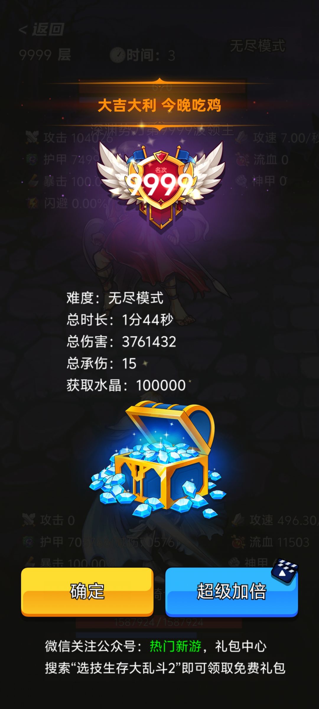 技能选择护甲生命弱化。9999层boss回血超级猛所以选择弱化回血降低攻速。
