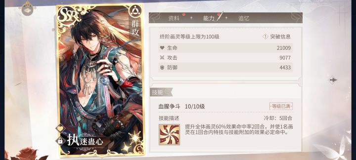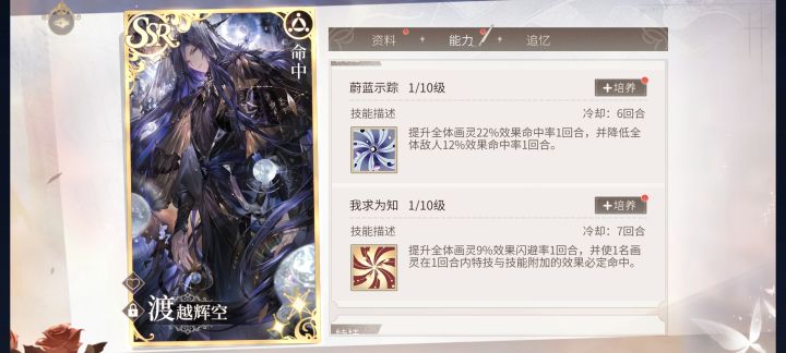 缺点:实际上无论是艾因的执迷蛊心还是司岚的渡越辉空都是5回合一个小技能,无法让杳念在第二次满特的时候及时附加特技效果必中的状态,因此实战中一般用于首轮或者次轮开大清条。
