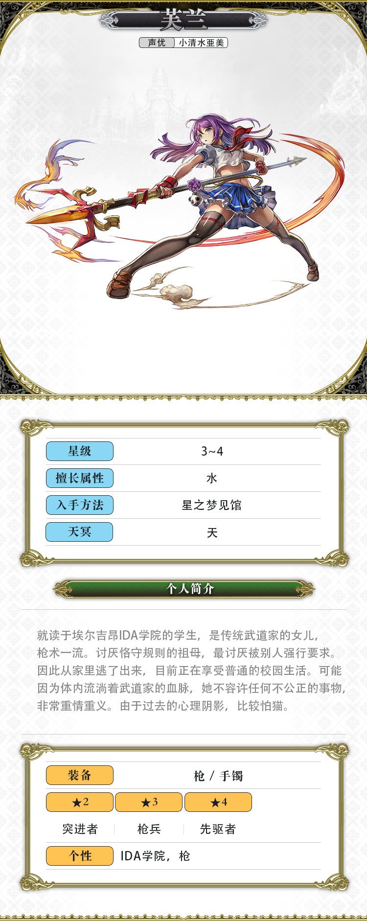 进阶为★3【枪兵】后开启